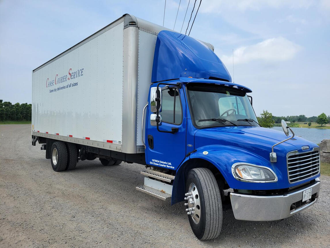 Our Freightliner is 26 feet long and holds 13,000 pounds, has a power tailgate for locations without loading docks. Dedicated runs are available upon request. Vans are used for small items and single skids and travel from Welland to Toronto and many locations in between. We take pride in having well maintained vehicles to meet your delivery requirements.